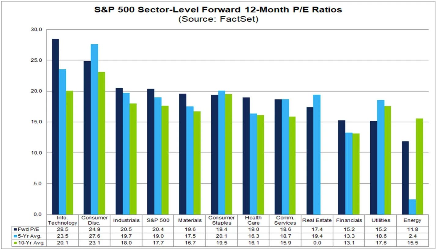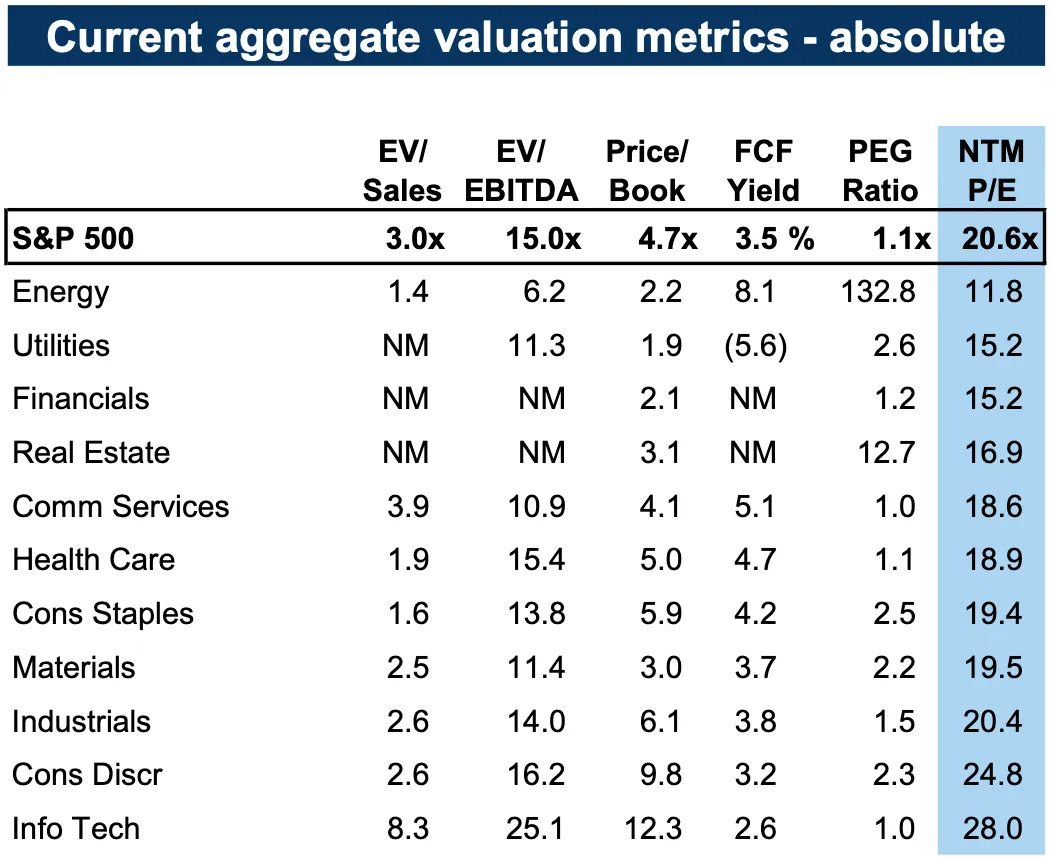 Preço/lucro projetado para os próximos 12 meses por setor.