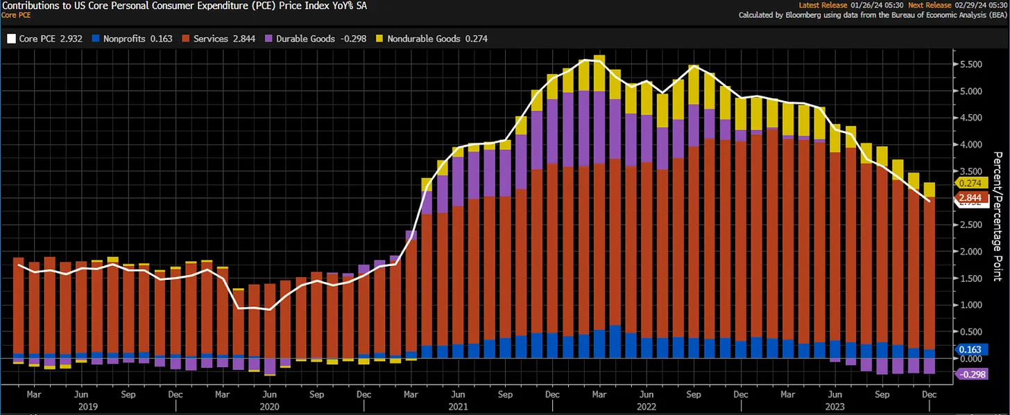 E o valor mais recente do núcleo do PCE (Índice de Despesas de Consumo Pessoal) está em 2,93%.