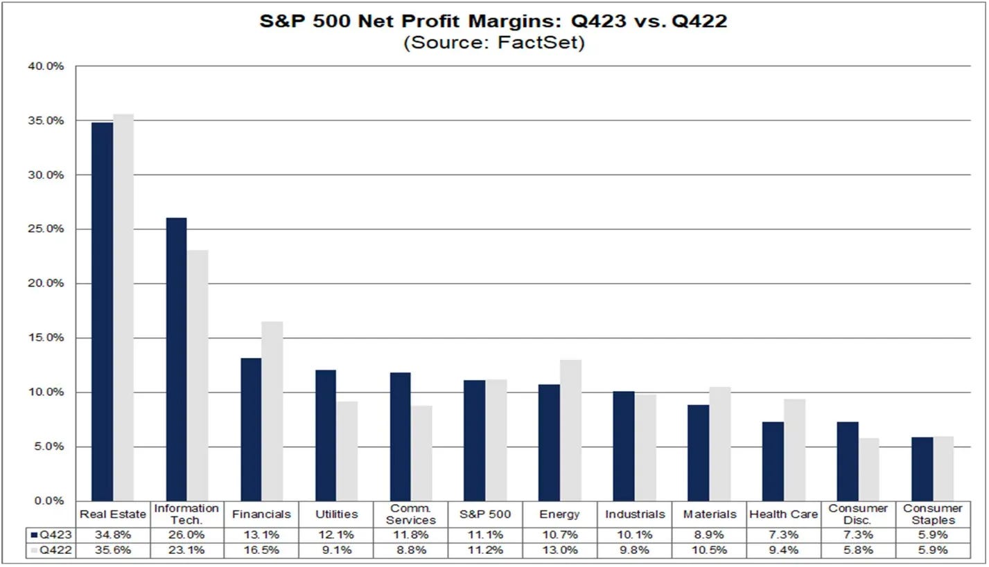 Margens de lucro por setor 4 tri 2022 x 4 tri 2023