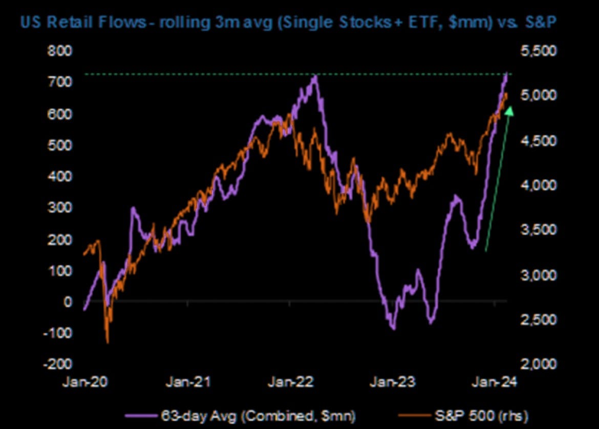 O fluxo de investimentos por parte dos investidores de varejo continua robusto.