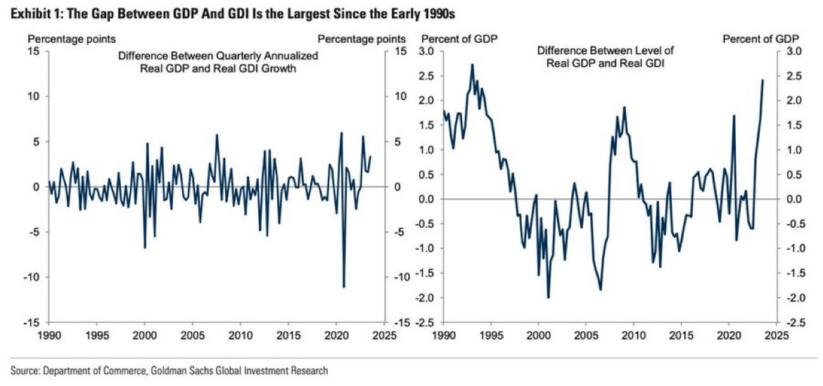 O Gap entre os níveis do Produto Interno Bruto (PIB) e da Renda Interna Bruta (GDI) está no seu nível mais alto desde o início dos anos 1990.