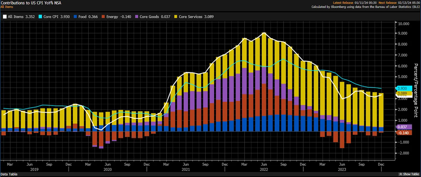Enquanto continuamos a observar uma desaceleração pronunciada e generalizada nos componentes centrais do CPI, a resiliência no crescimento está impactando marginalmente os números gerais devido ao componente de energia.