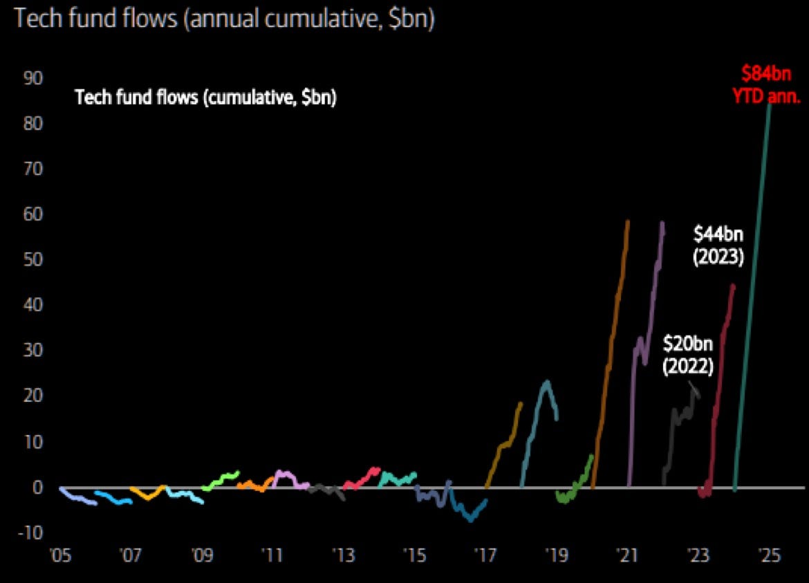 Estamos observando o maior fluxo de recursos para fundos do setor de tecnologia na história.